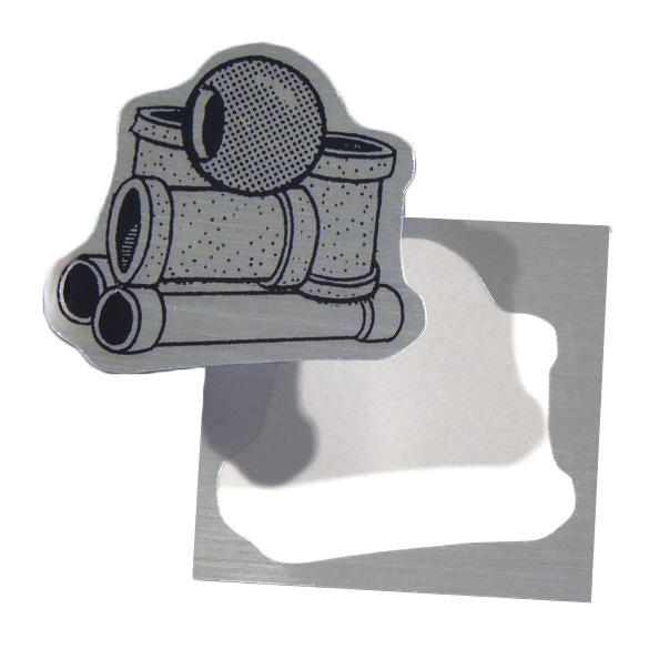 金氏徹平デザインのコラージュ作品をヘアラインアルミのステッカーにしました。デザインに沿ってカットされています。数に限りがありますのでお早めにお買い求め下さい。
