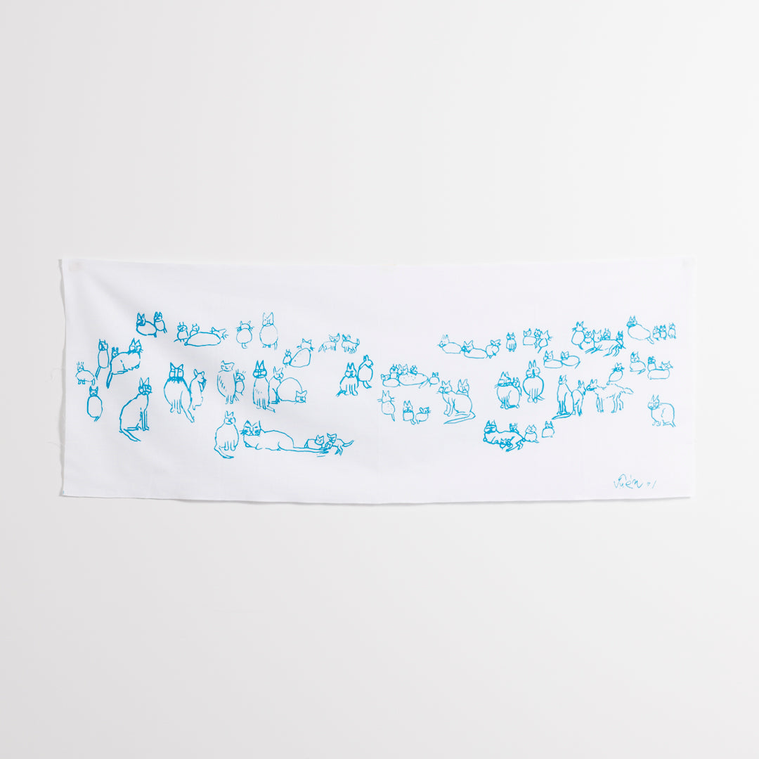 Genichiro Inokuma depicted many cats throughout his life.We have created a distinctive tenugui hand towel featuring Inokuma’s beloved cats. It is available in two colors, blue and white. Many different cats depicted by Inokuma are sure to brighten up your day.