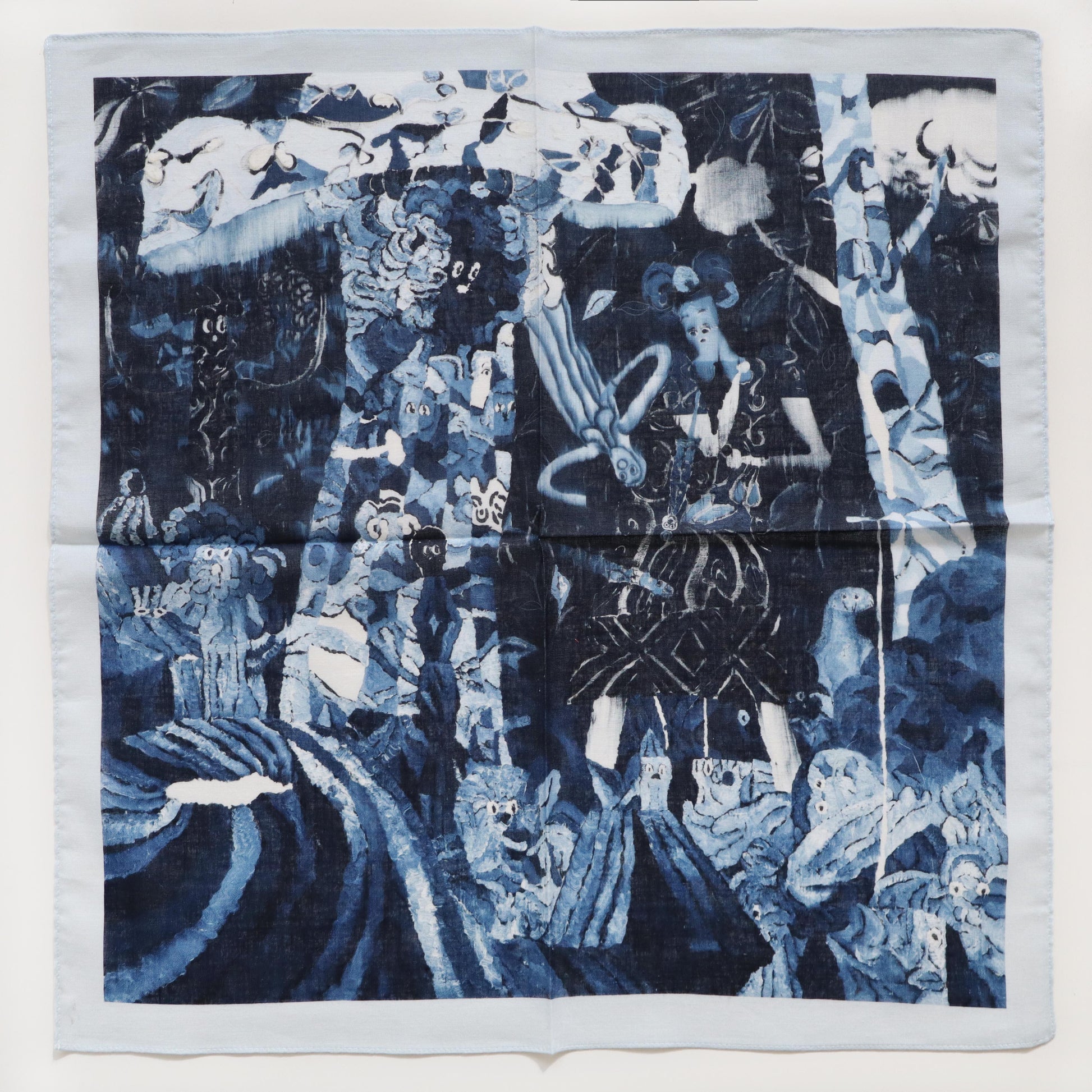 「中園孔二 ソウルメイト」で展示中の作品をプリントしたハンカチです。