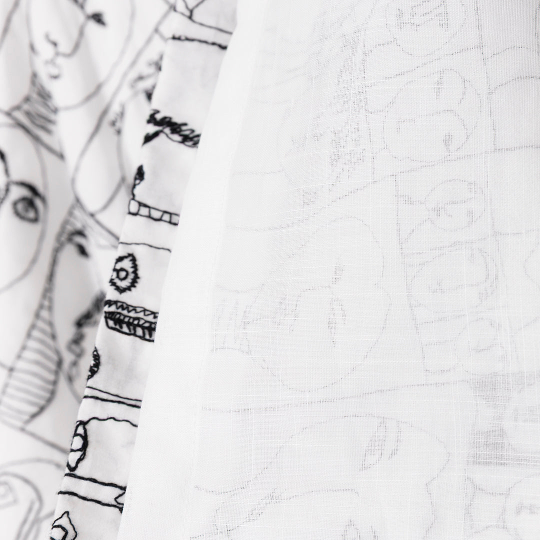 This fabric features a delicate embroidered reproduction of Inokuma’s Face 25. Available in four colors—pick your favorites.